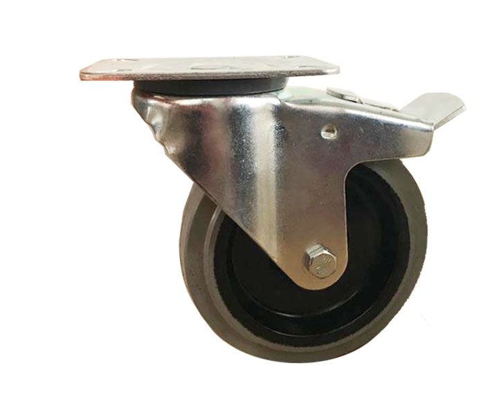 Ruota Gomma Grigia Elastica (Cerchio Nylon) | Girevole a Piastra con Freno