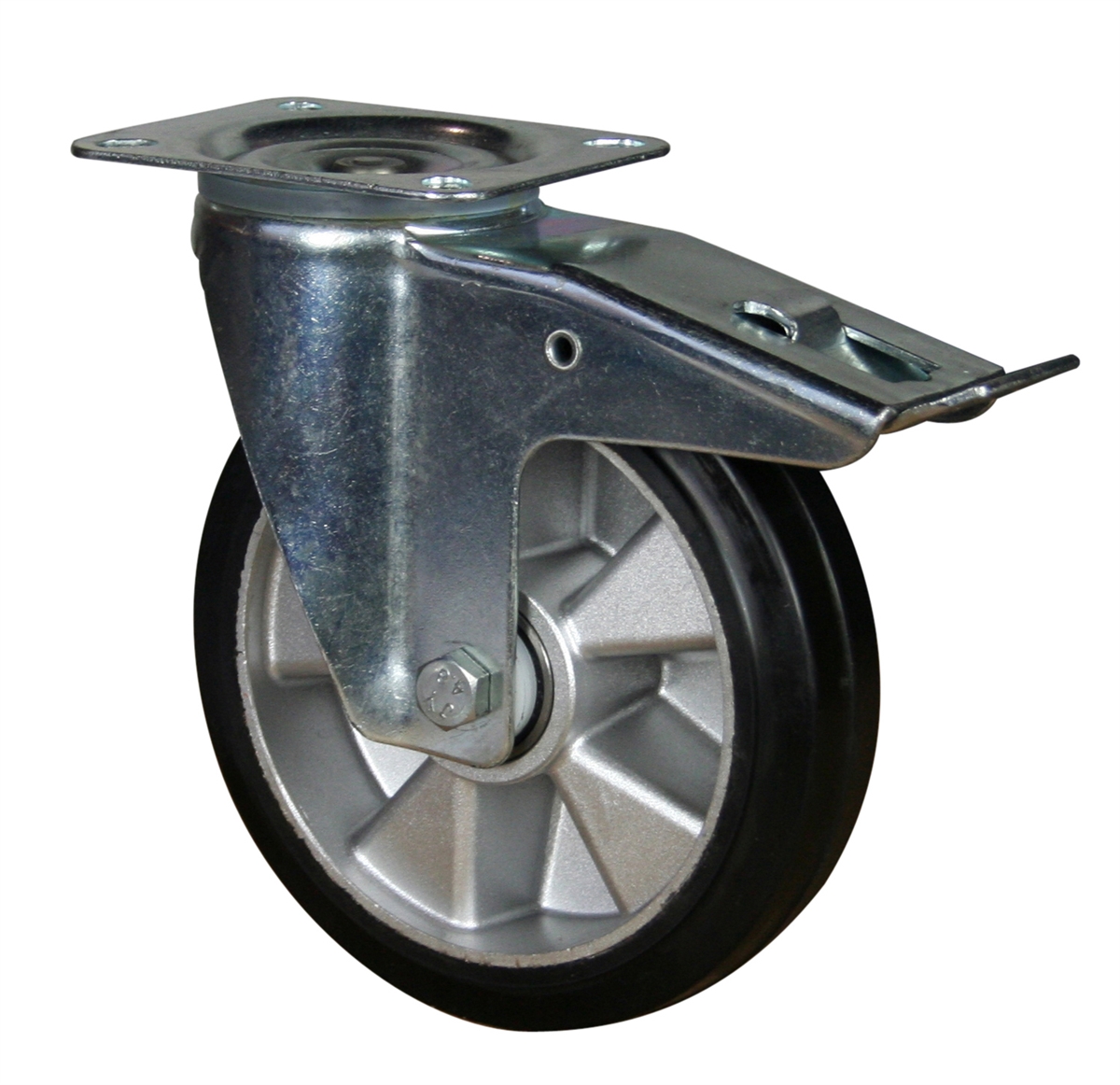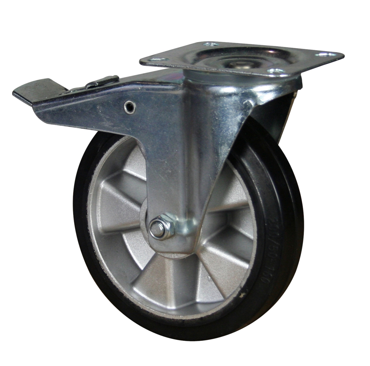 Ruota Gomma Elastica (Cerchio Alluminio) | Girevole a Piastra con Freno