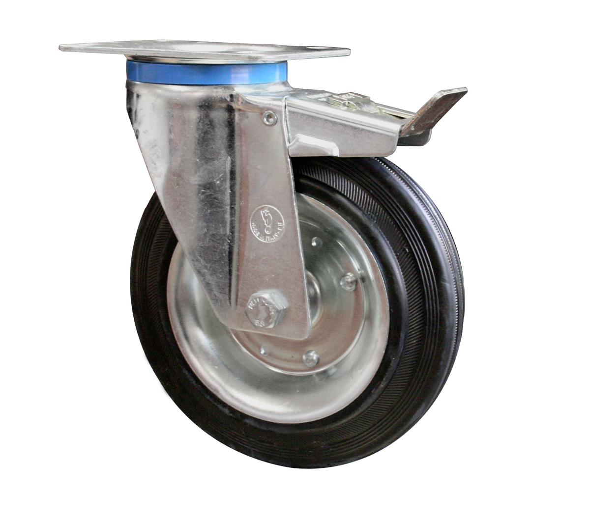 Ruota Gomma Nera Industriale (Cerchio Lamiera Zincato) | Girevole a Piastra con Freno