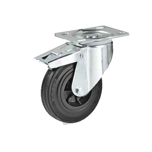 Ruota Gomma Nera Industriale (Cerchio Polipropilene) | Girevole a Piastra con Freno
