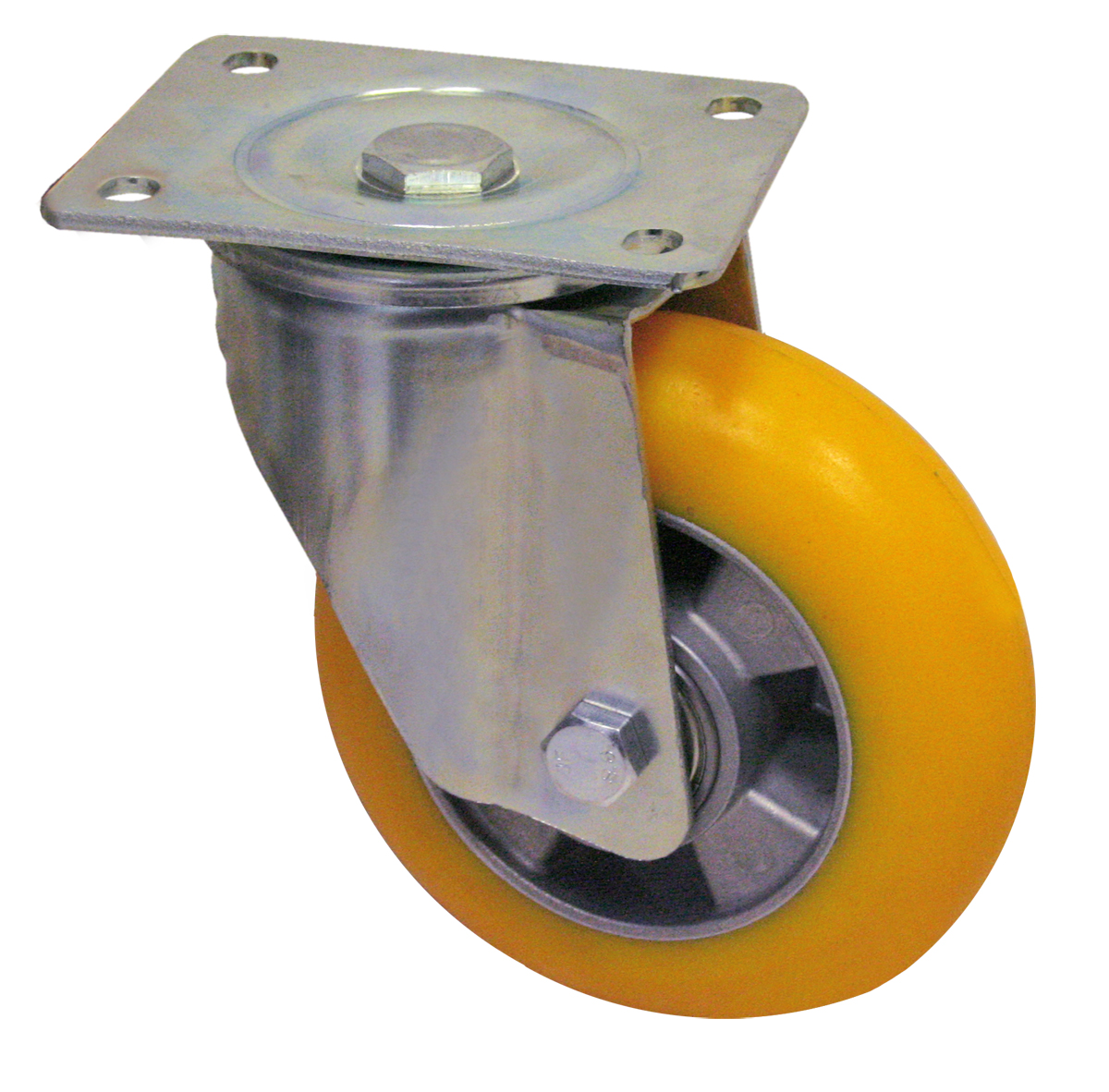 Ruota Poliuretano – Disco Alluminio ø 100 mm | Girevole a Piastra | 110 kg