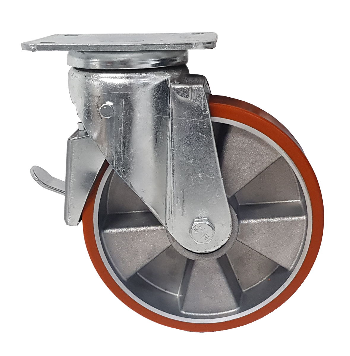 Ruota Poliuretano (Cerchi Alluminio) | Girevole a Piastra con Freno