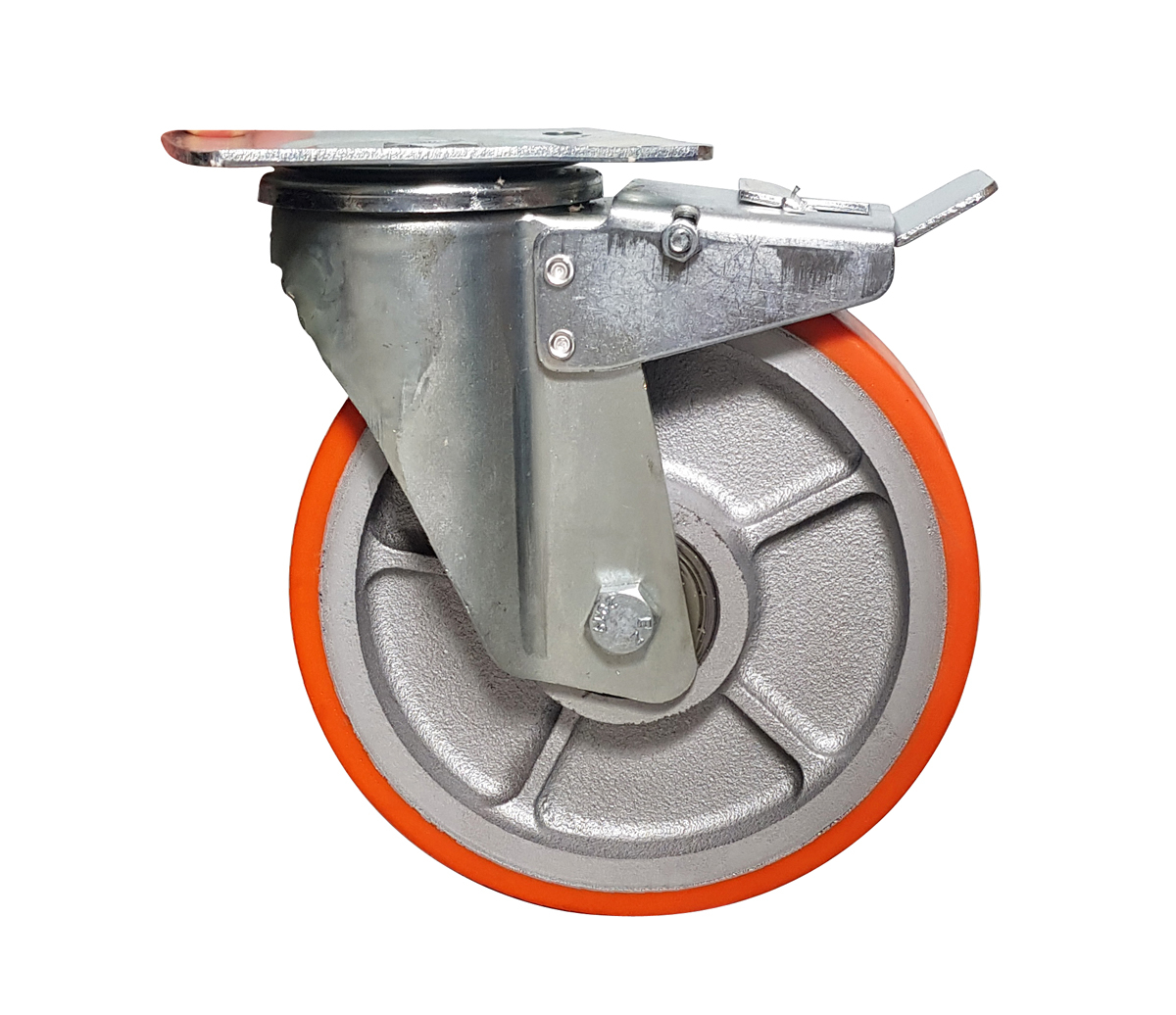 Ruota Poliuretano (Cerchio Ghisa) | Girevole a Piastra con Freno