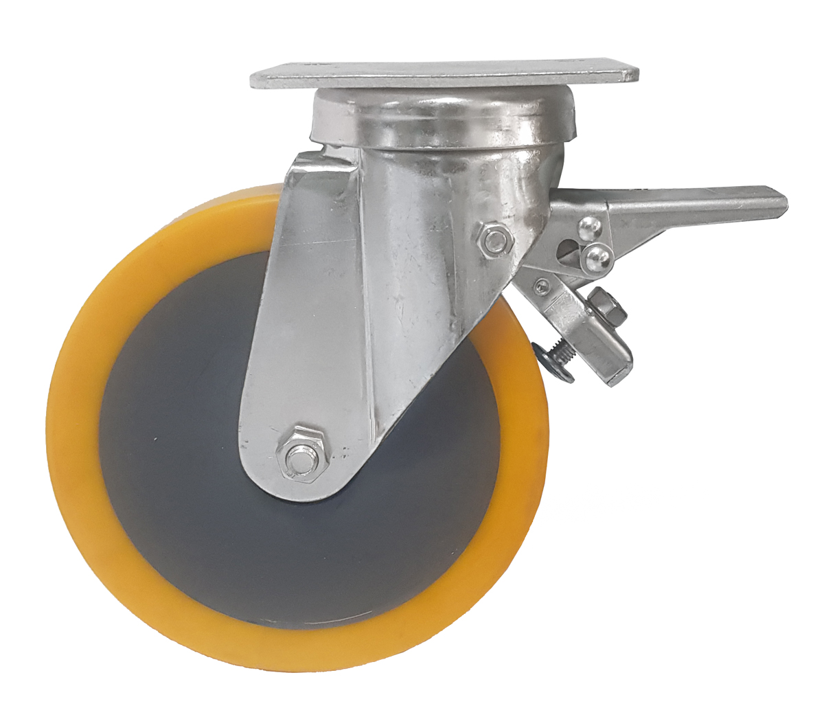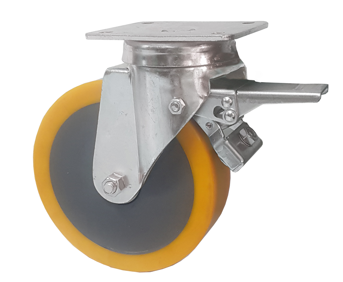 Ruota Poliuretano (Cerchio Nylon) | Girevole a Piastra con Freno