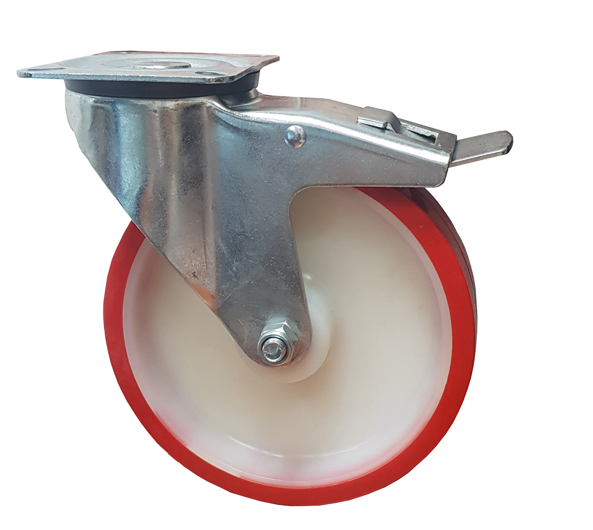 Ruota Poliuretano (Cerchio Nylon) | Girevole a Piastra con Freno